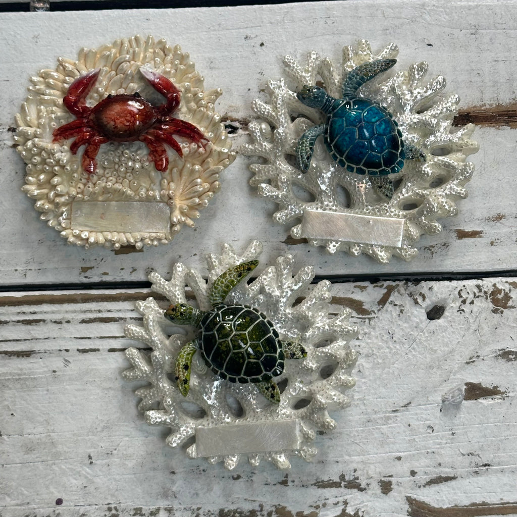 Colorful Green Turtle on Coral Magnet, perfect for decoration or glass and resin art.