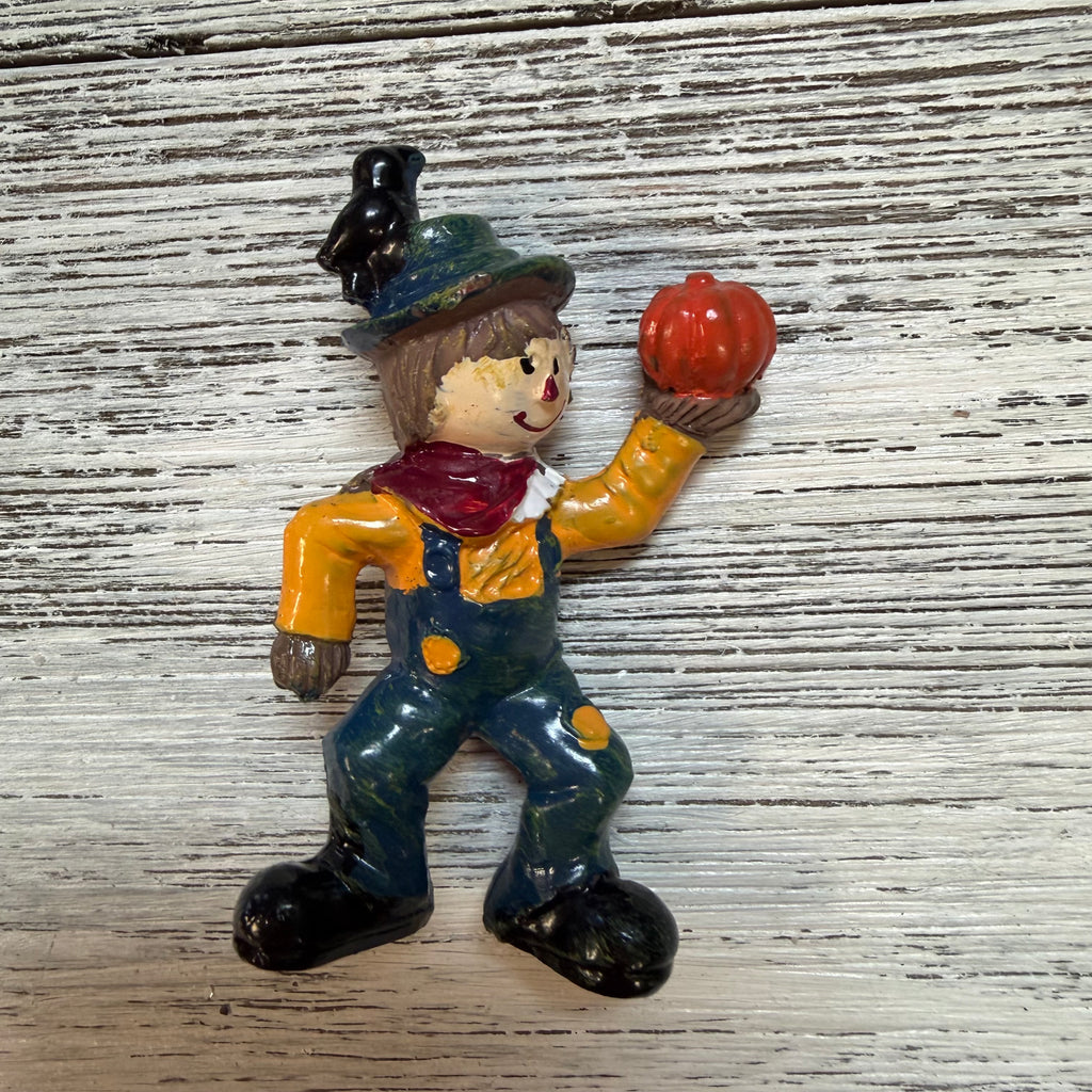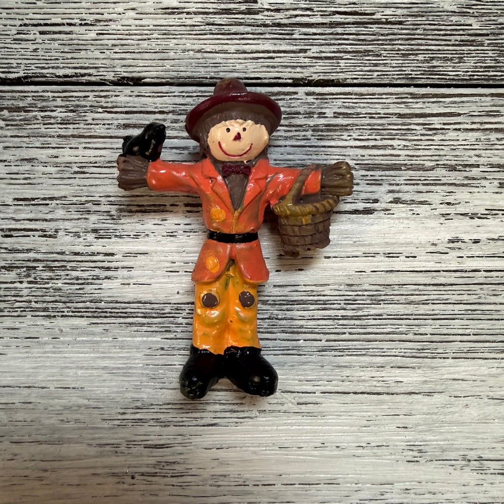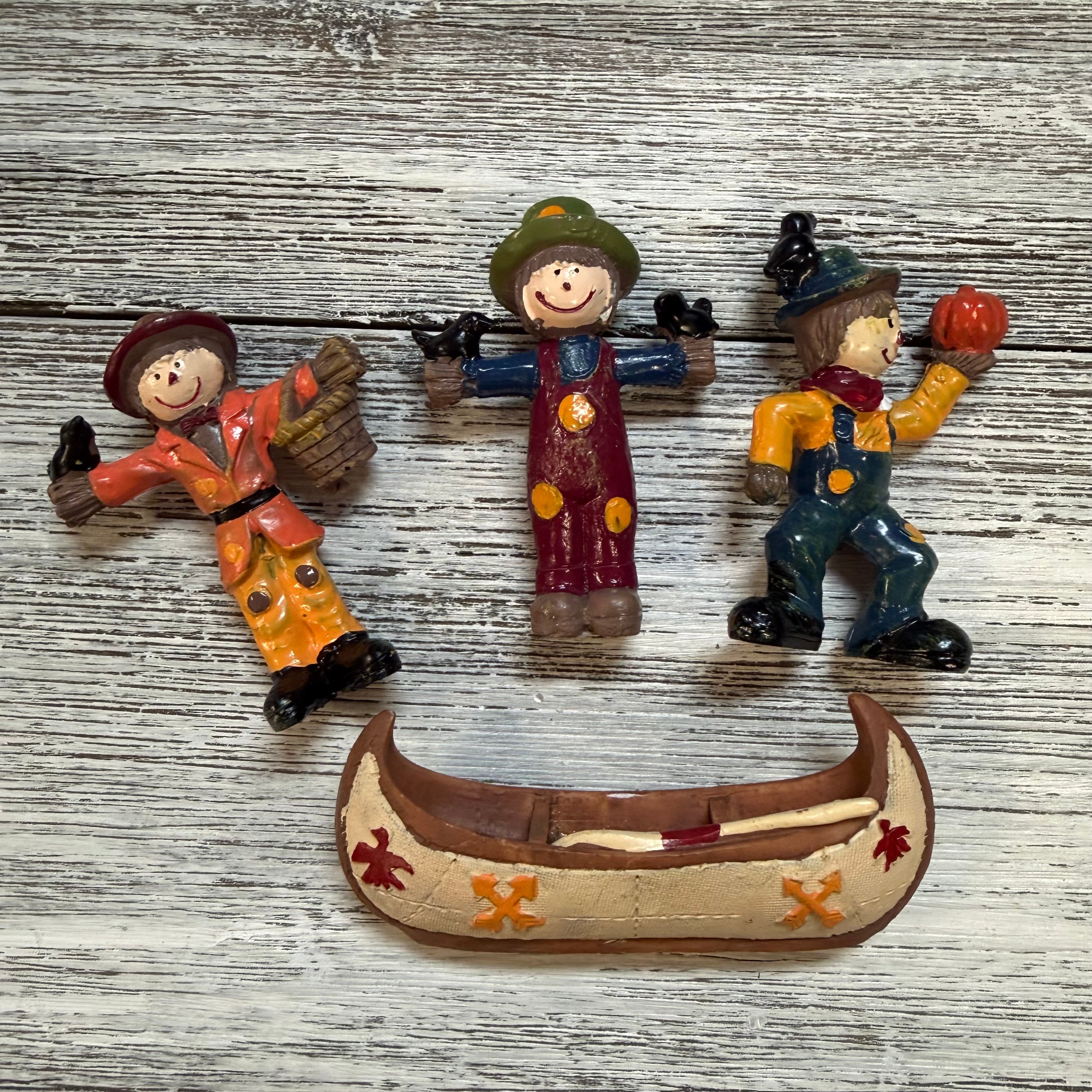 Harvest Canoe Thanksgiving Special. Choose from yellow, red, or blue scarecrow paired with a canoe! Set contains two pieces: canoe and scarecrow of your color choice. Polyresin.