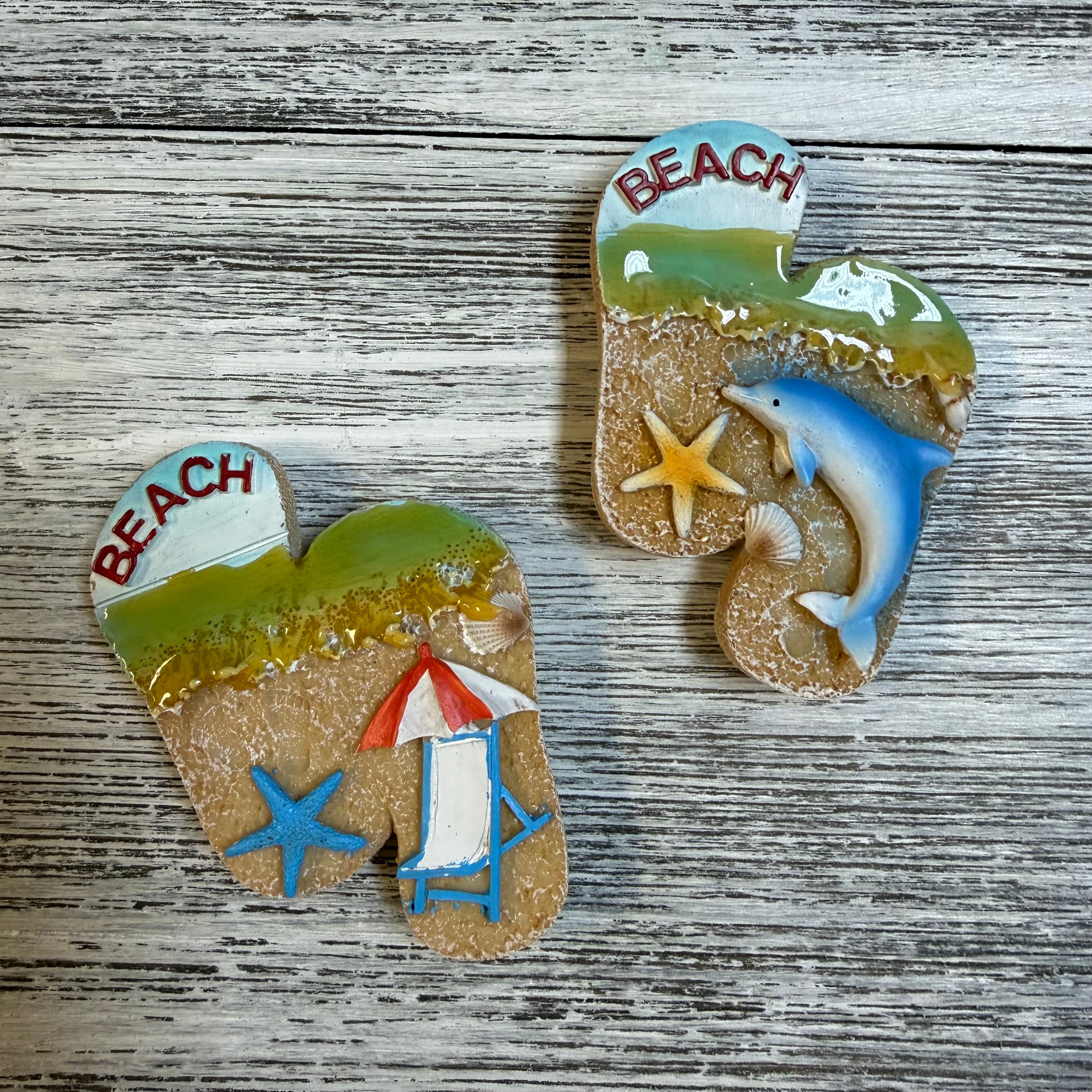 Flip Flops Magnet Set Q2 measuring approximately 2-1/2". Polystone composition.
