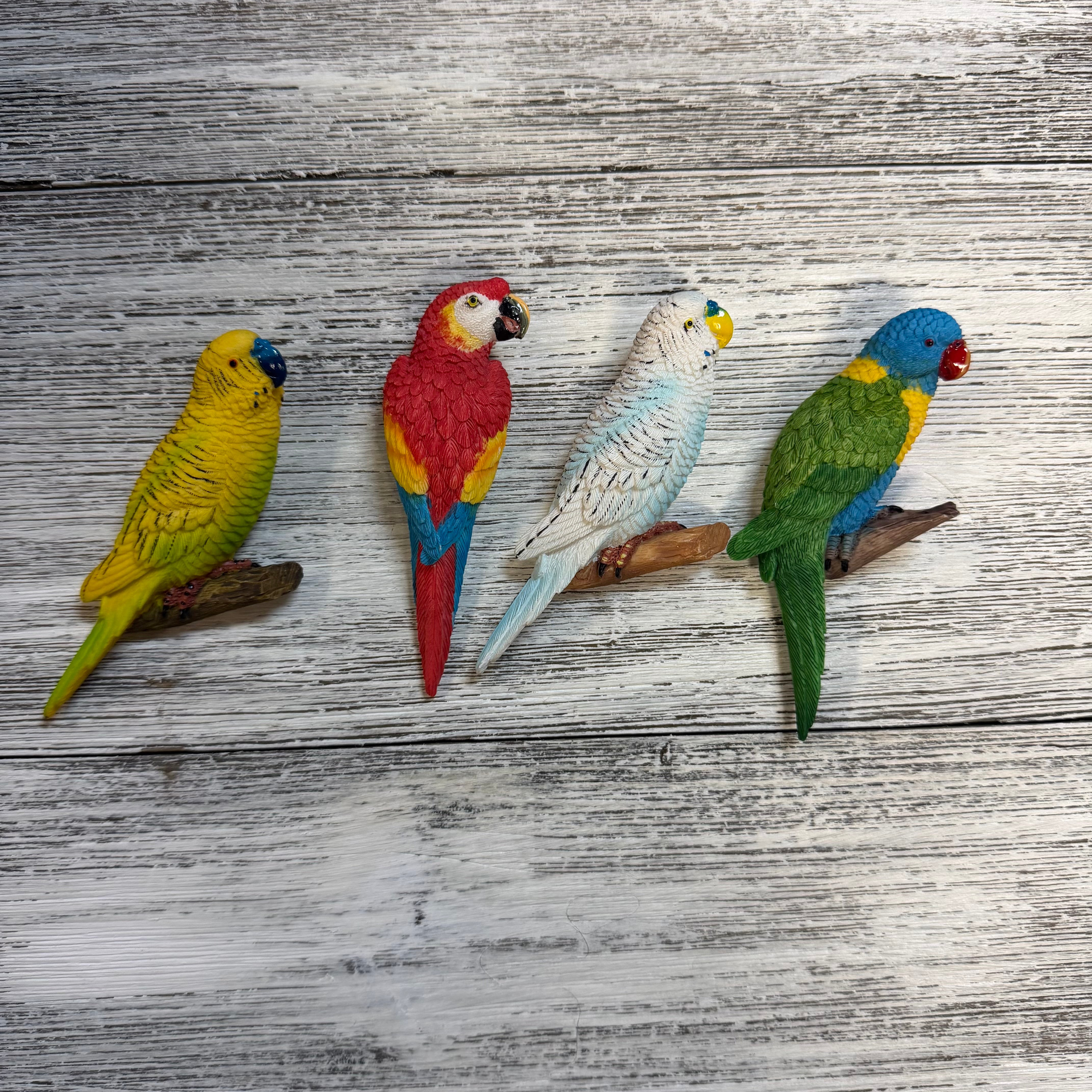 Assorted Tropical Bird Magnets. One randomly fulfilled. 3.5-4”long. 3D, poly stone ornaments. Great for beach and bar themed glass art! Its 5 o’clock somewhere!