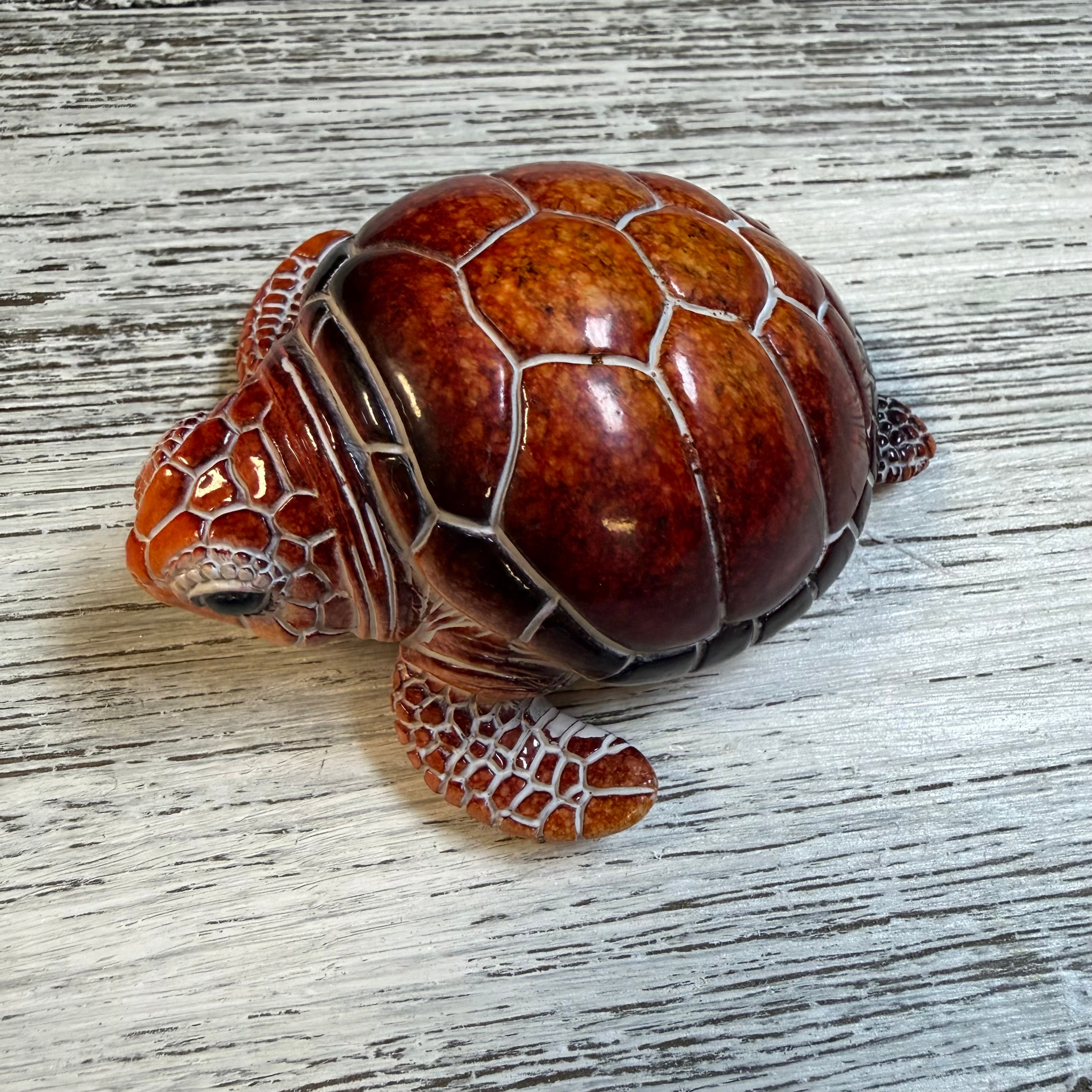 This brown/red chunky sea turtle figurine measures approximately 3” and is made of polyresin composite. This beauty is perfect for coastal display, or resin art creations.