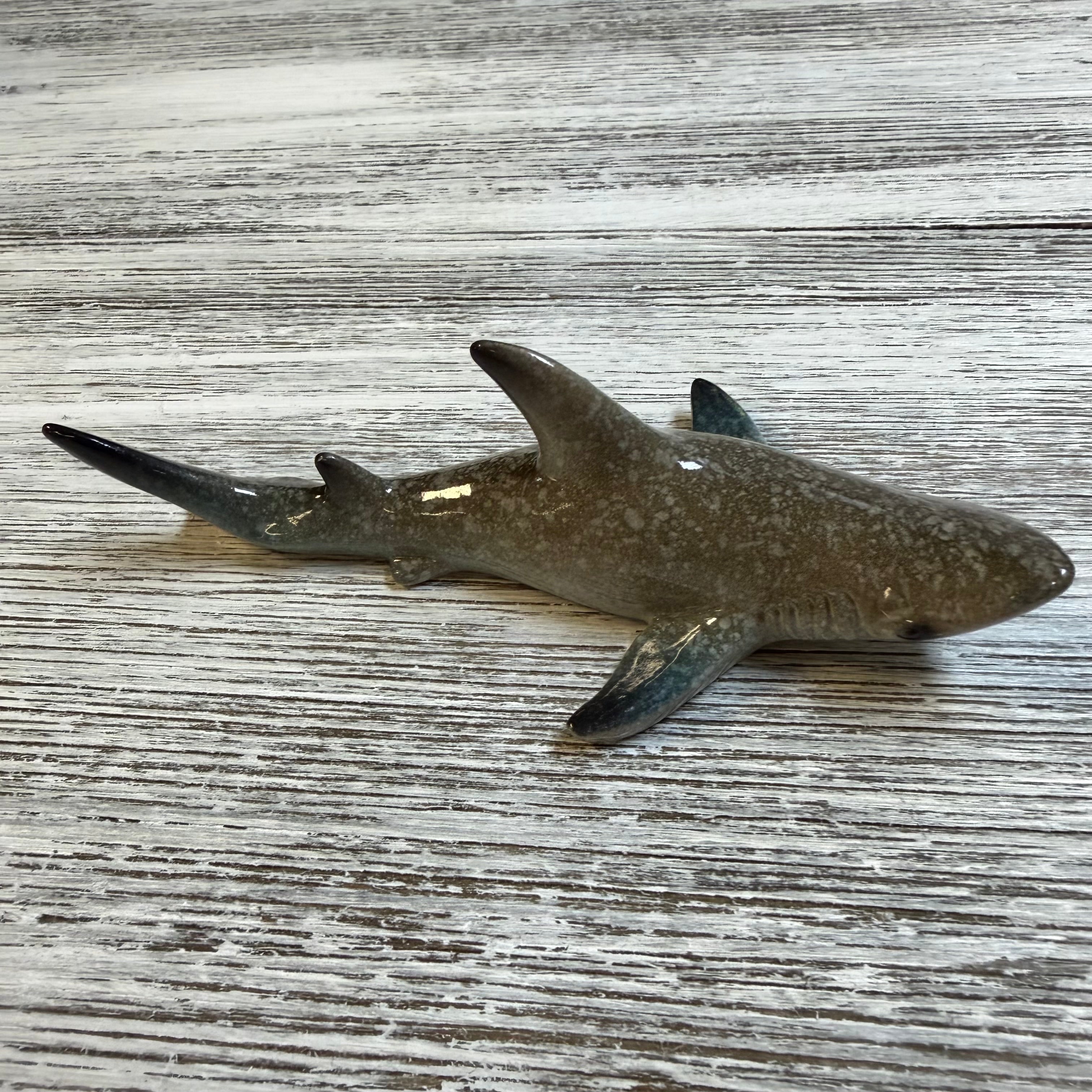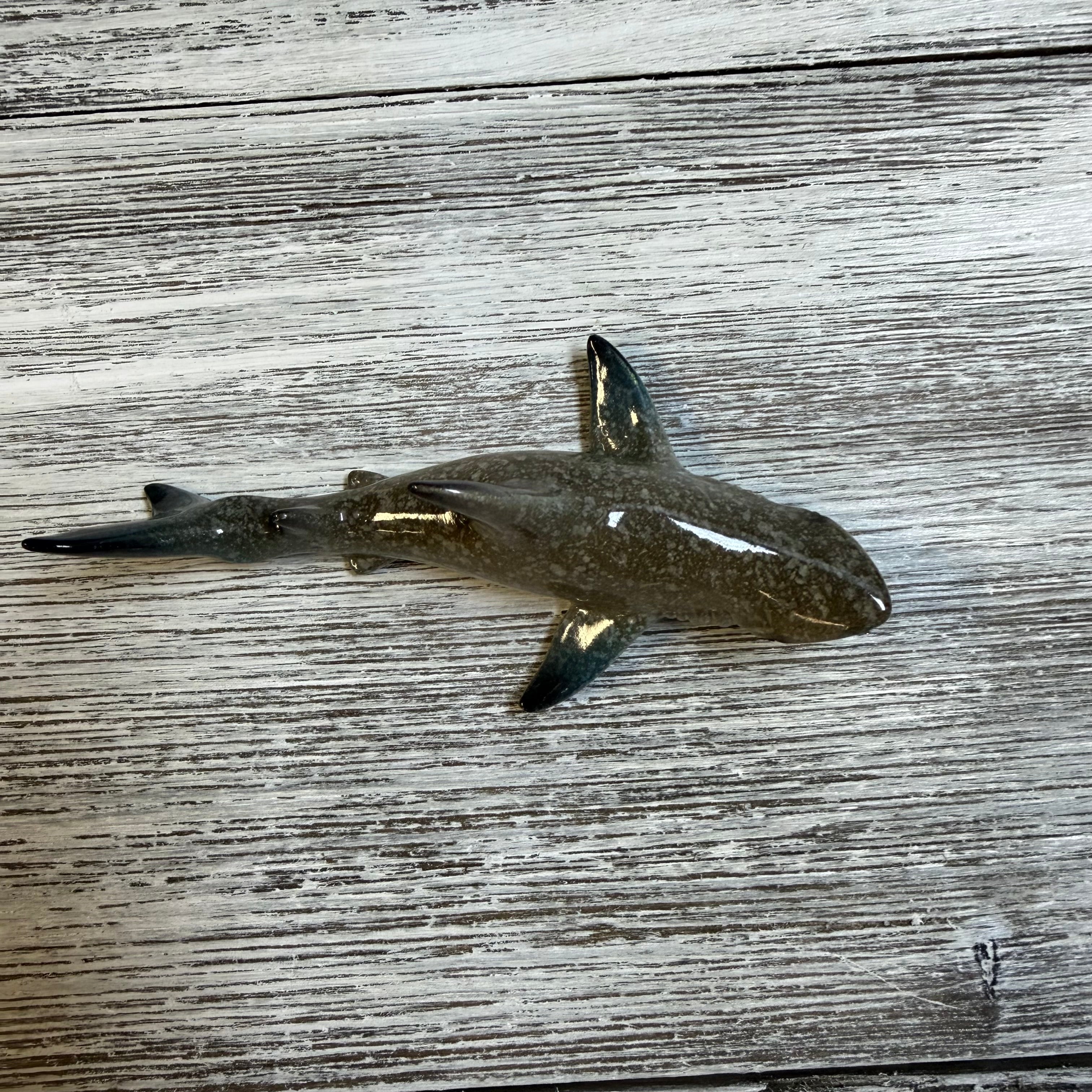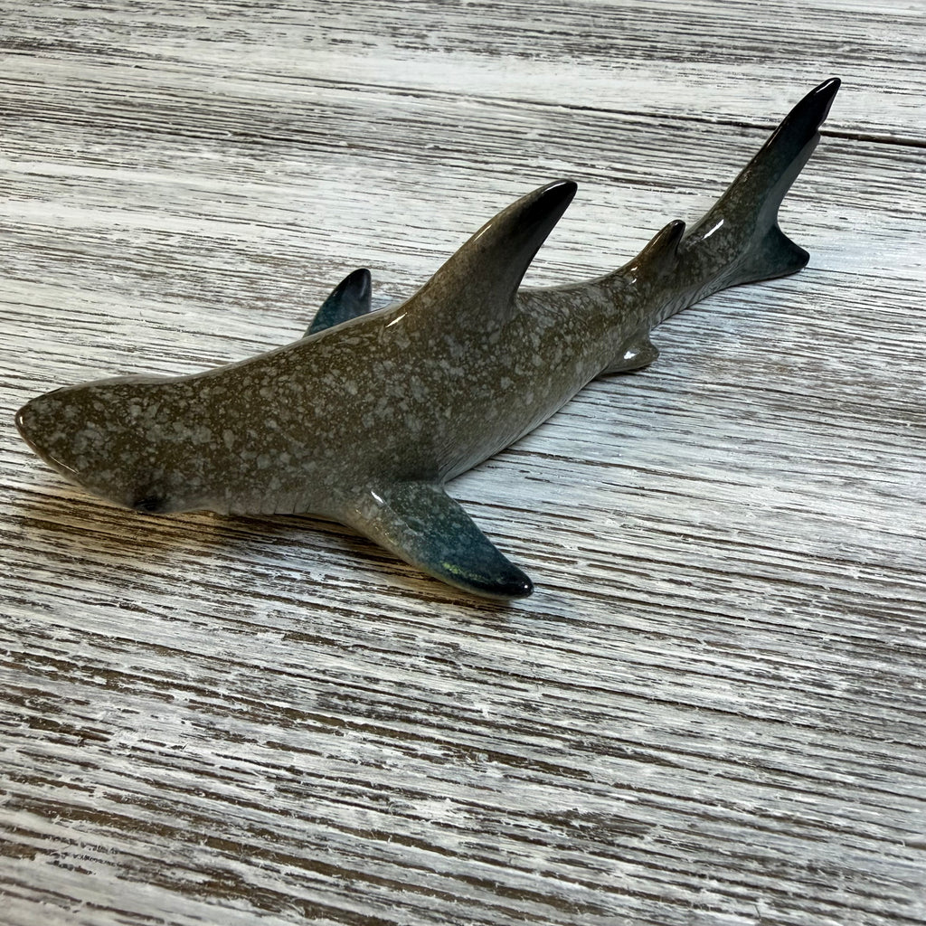 Shark Resin Figurine measuring approximately 4“. Polyresin. Taupe coloring.
