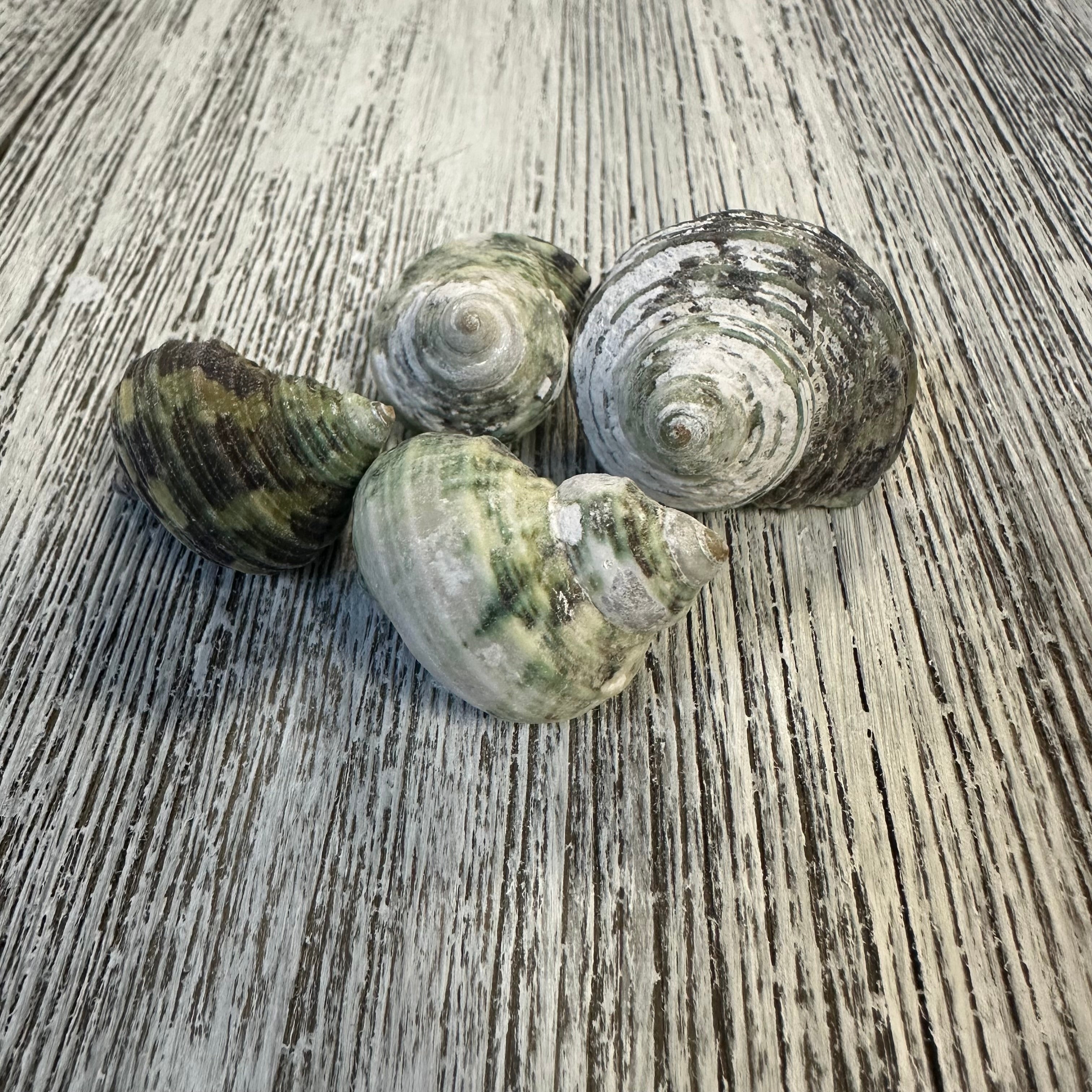 Q4 Small natural, unpolished, turbo seashells. Seashell measuring approximately 1/2 to 1-1/2”. UNPolished shell. Natural variations in color and size.