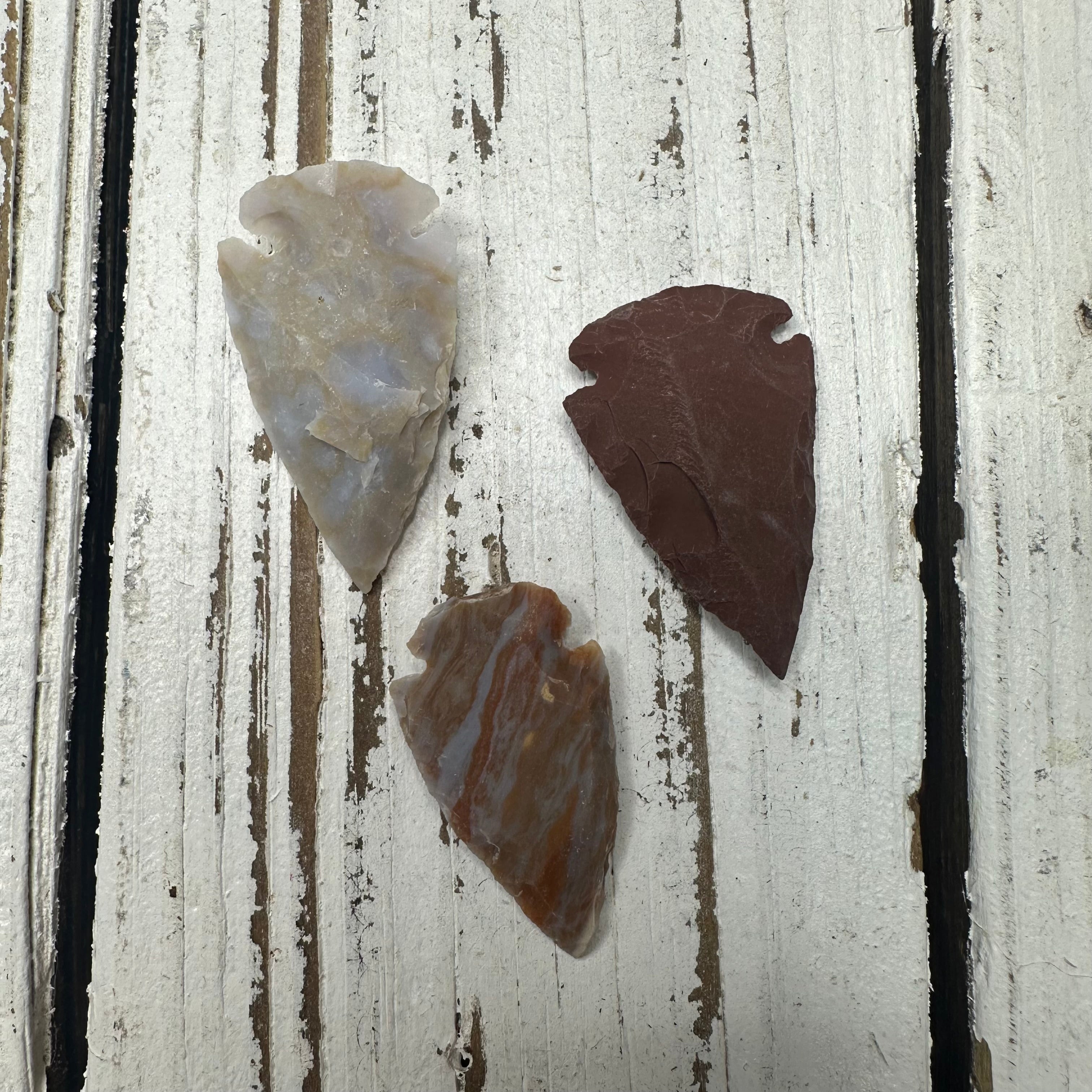 Stone Arrowhead measuring approximately 1-1/2”. Naturally vibrations in size, shape, and color.